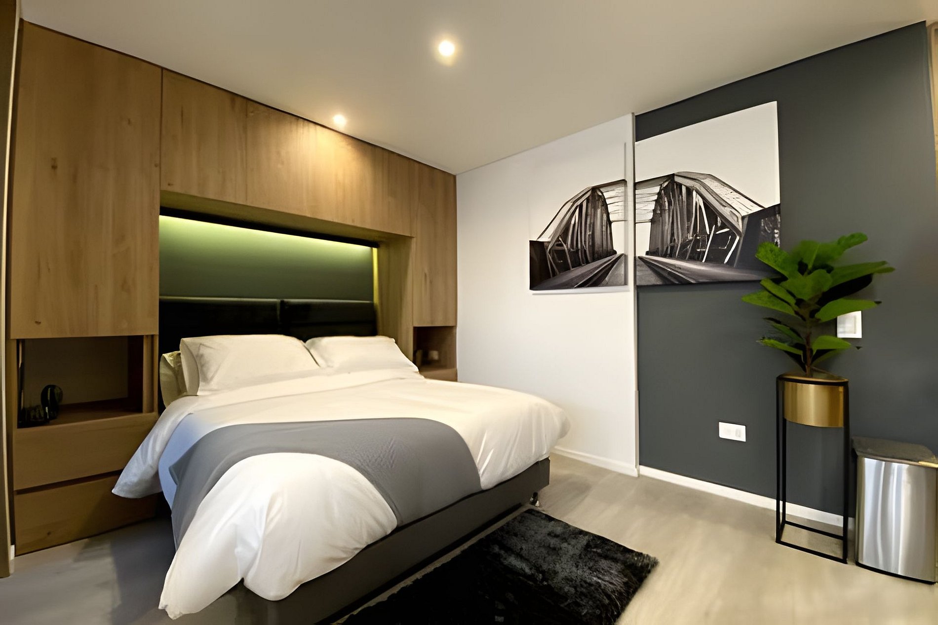 El Edificio FRAG está diseñado para viajeros que buscan comodidad, seguridad y una ubicación privilegiada en Bogotá. Contamos con 19 apartamentos modernos, totalmente equipados, ideales tanto para estancias cortas como para quienes visitan la ciudad por turismo, trabajo o eventos.