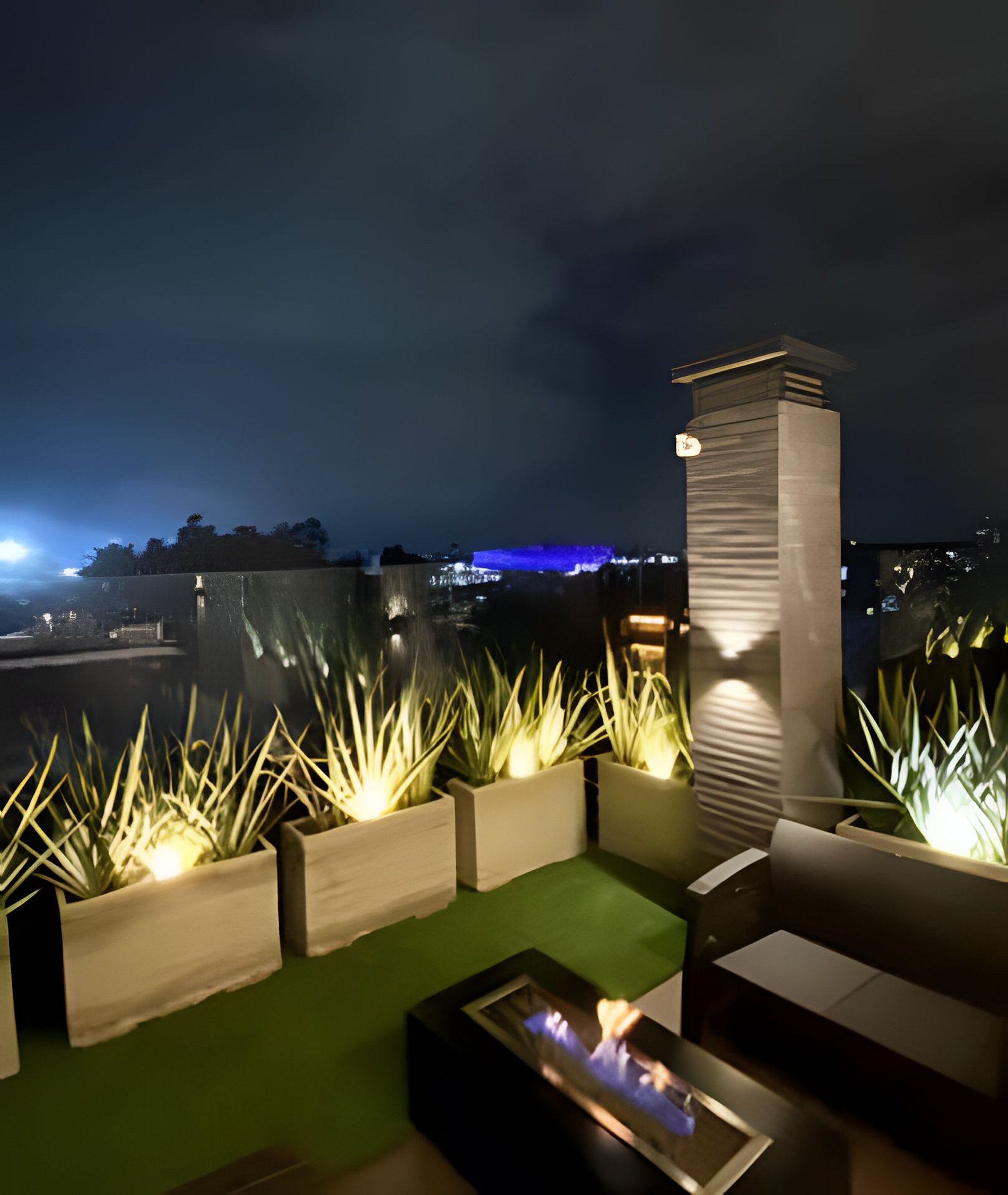 Terraza comunal con vista a la ciudad, perfecta para relajarte, compartir un café o disfrutar de un momento tranquilo al aire libre.
