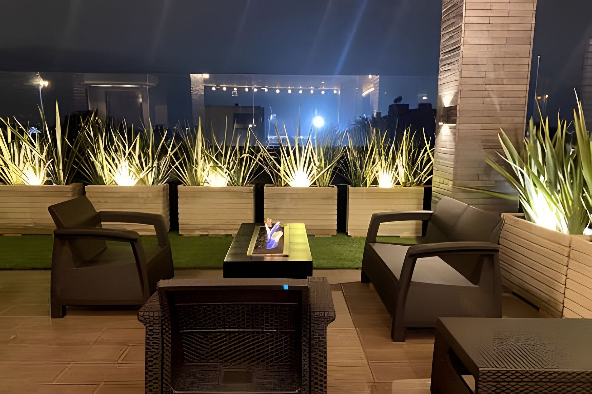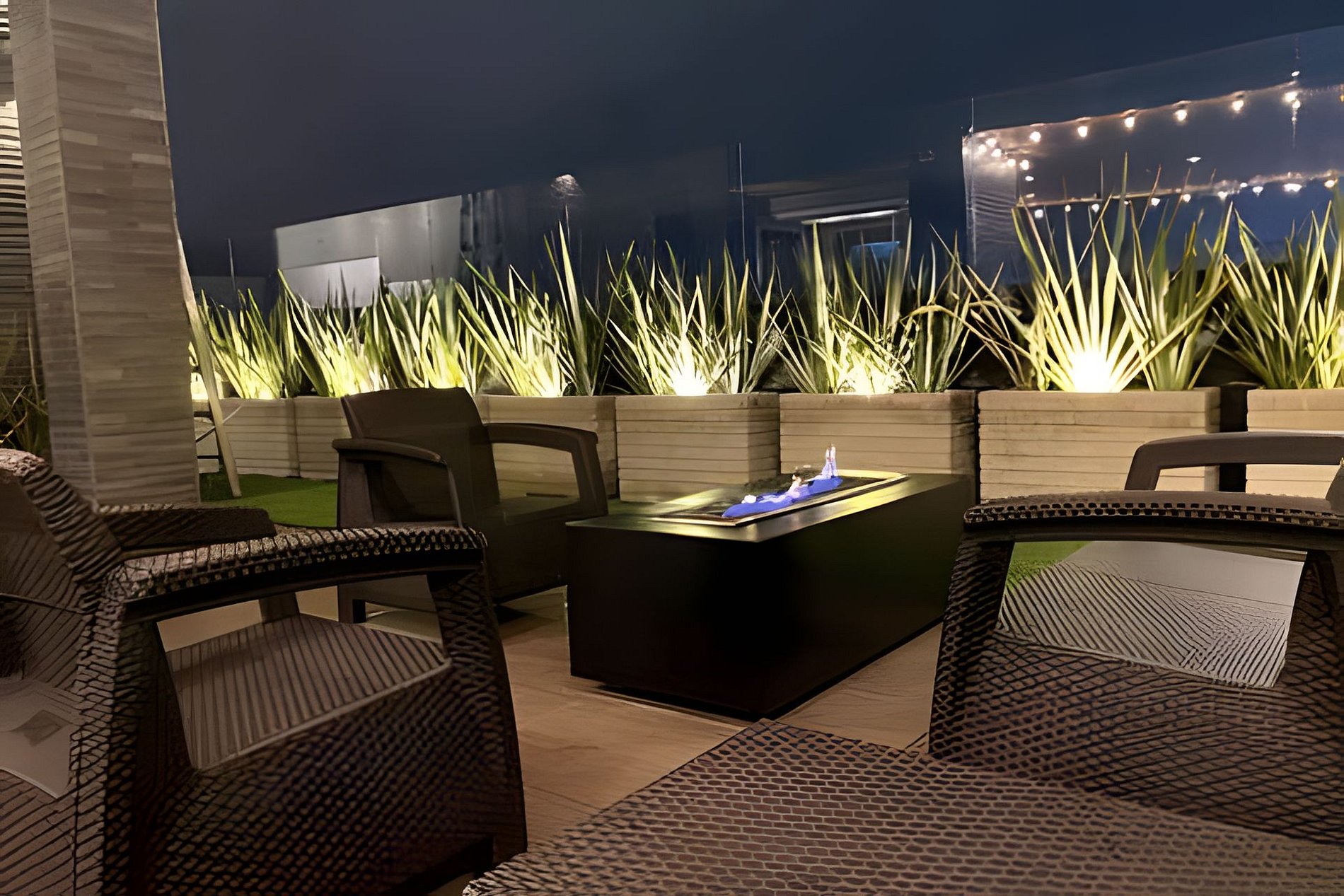 Terraza comunal con vista a la ciudad, perfecta para relajarte, compartir un café o disfrutar de un momento tranquilo al aire libre.