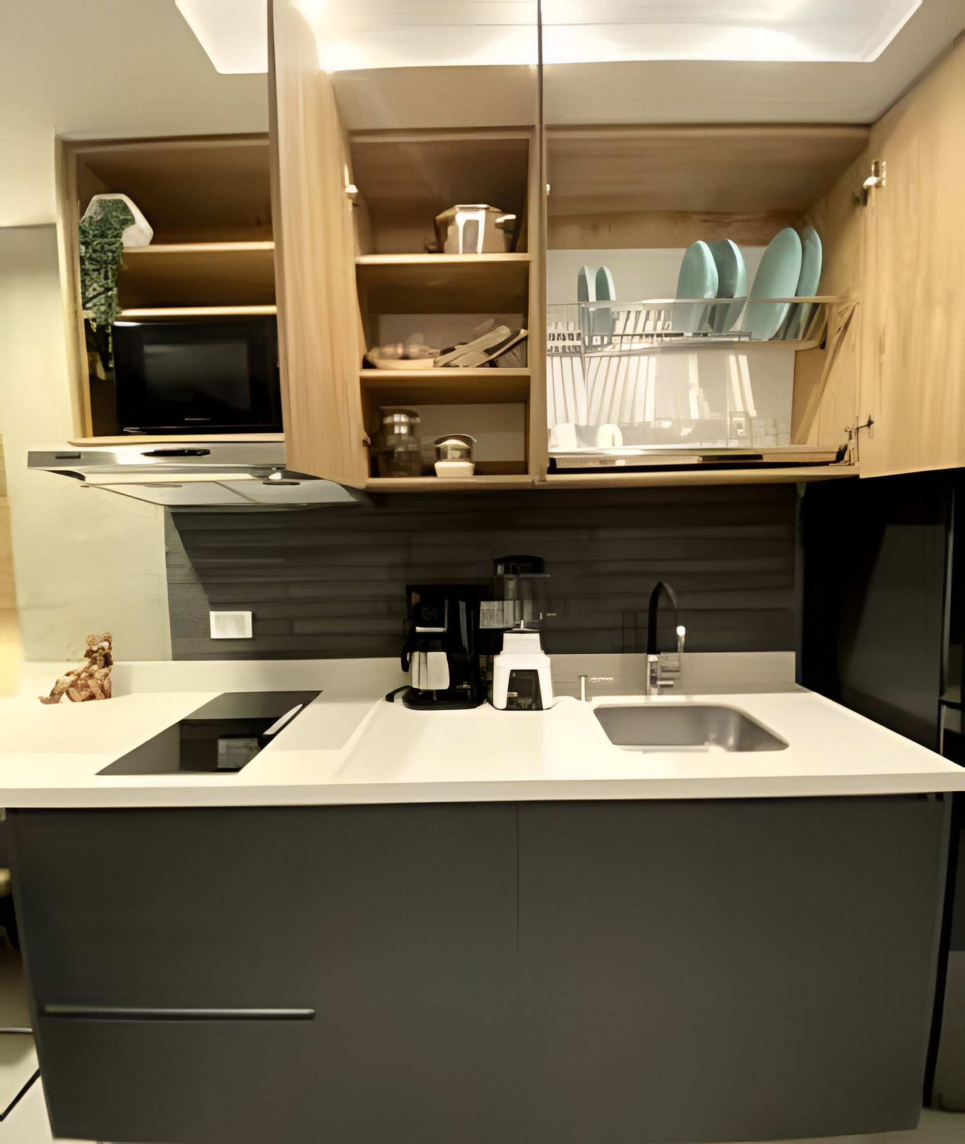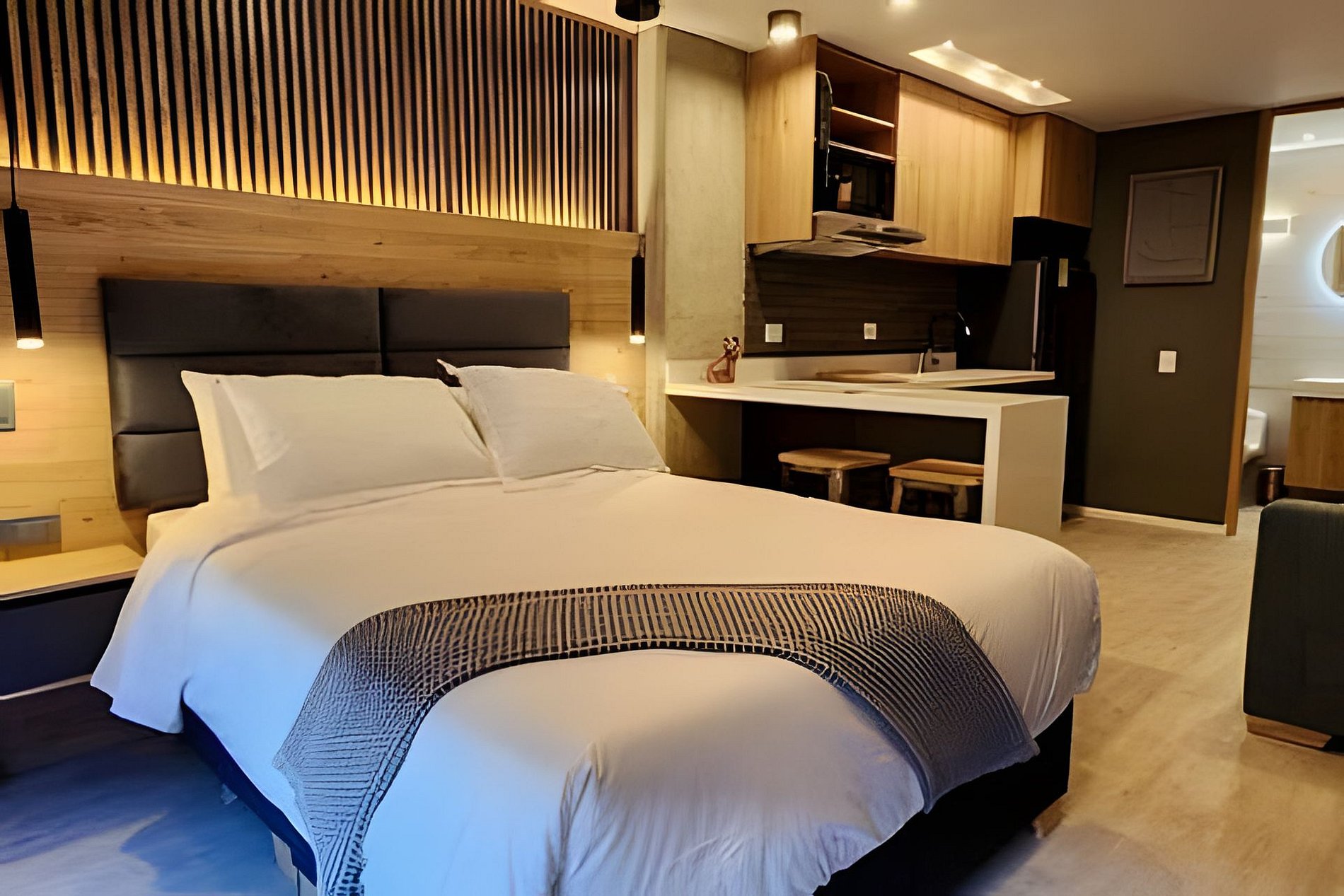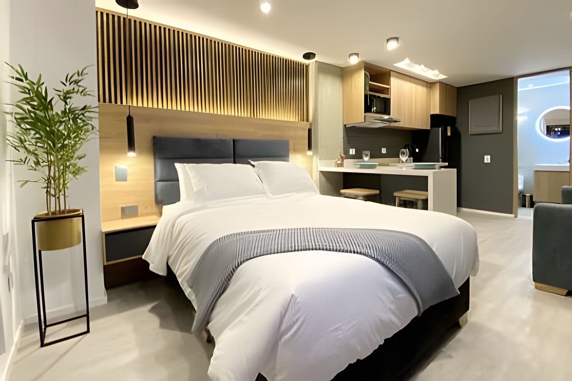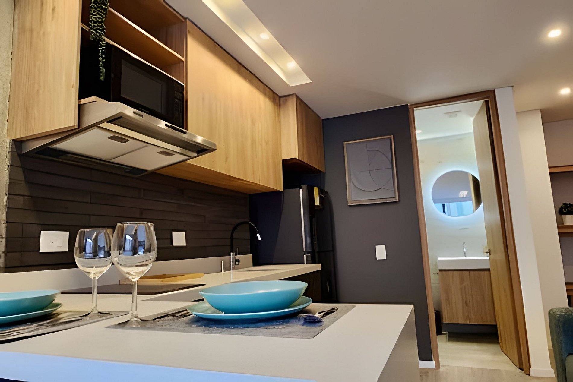 Apartamentos equipados con cocina completa, sala, Wi-Fi de alta velocidad y Smart TV.