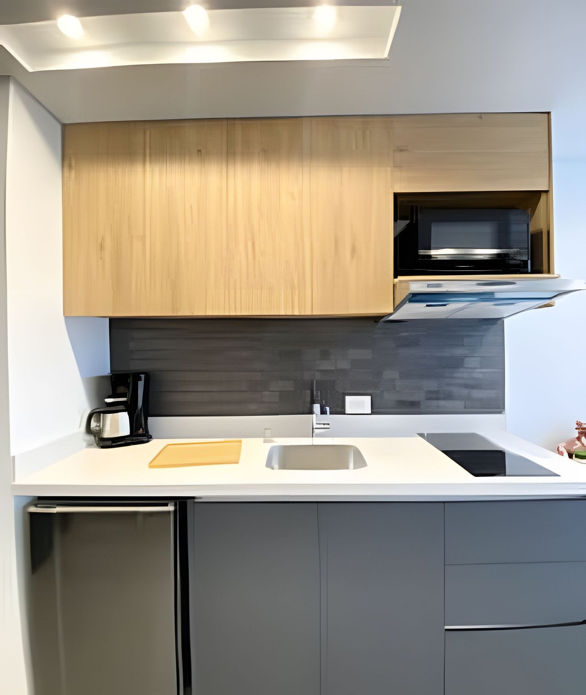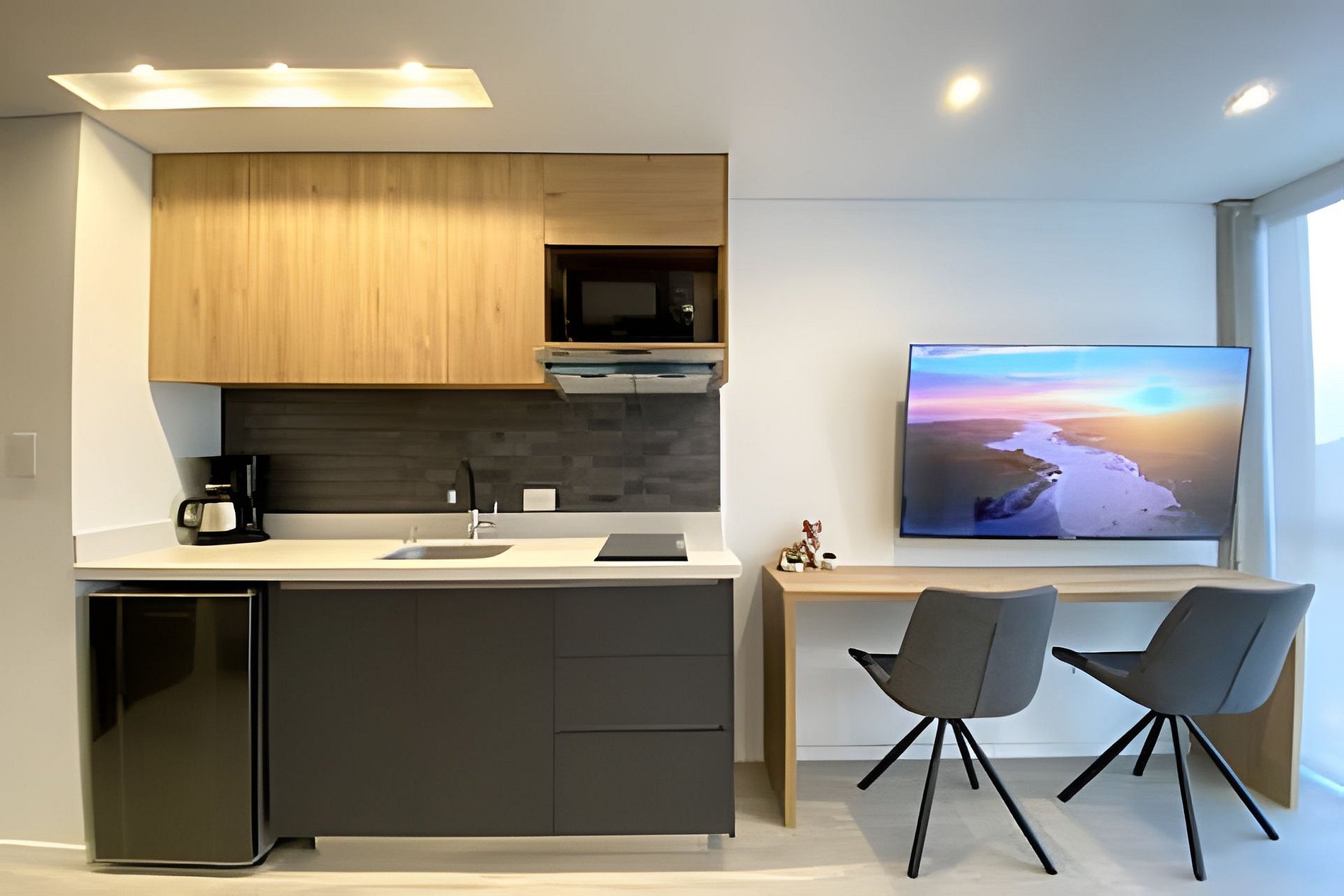 Apartamentos equipados con cocina completa, sala, Wi-Fi de alta velocidad y Smart TV.