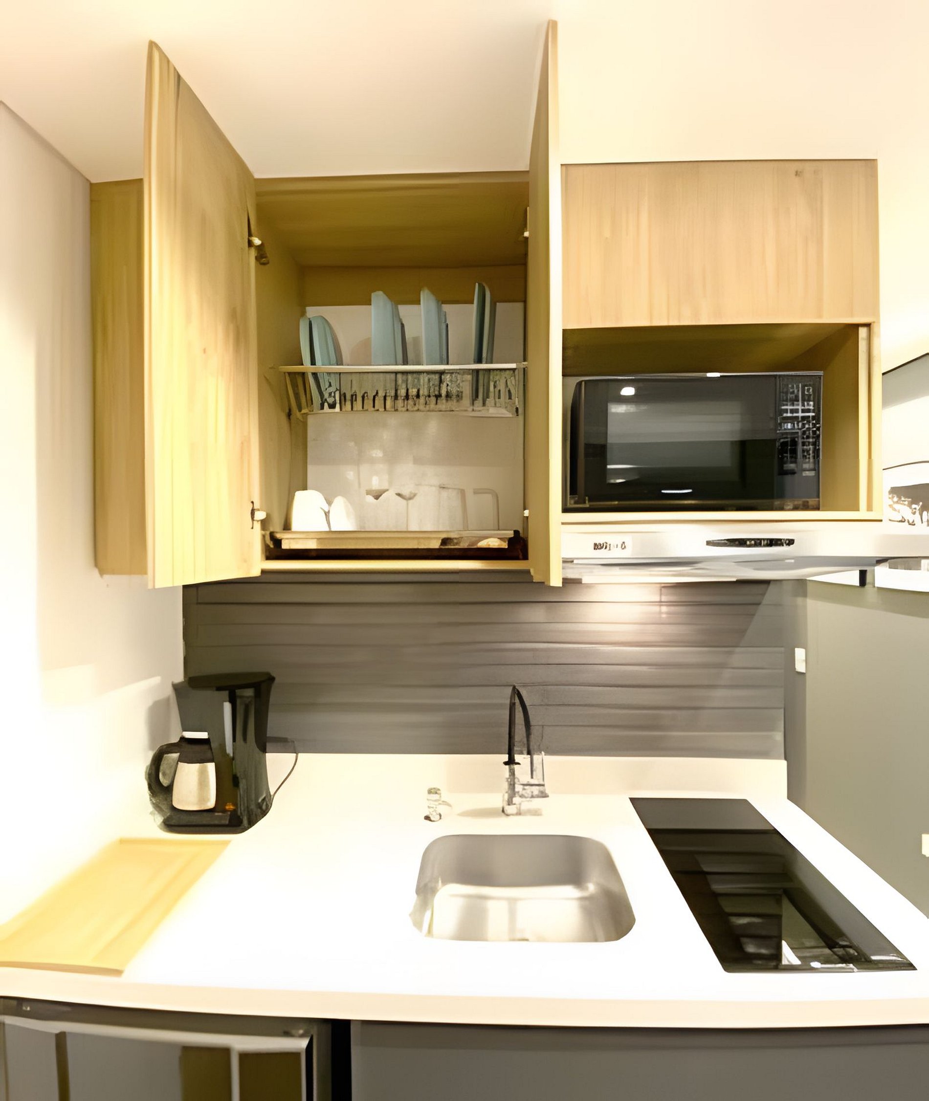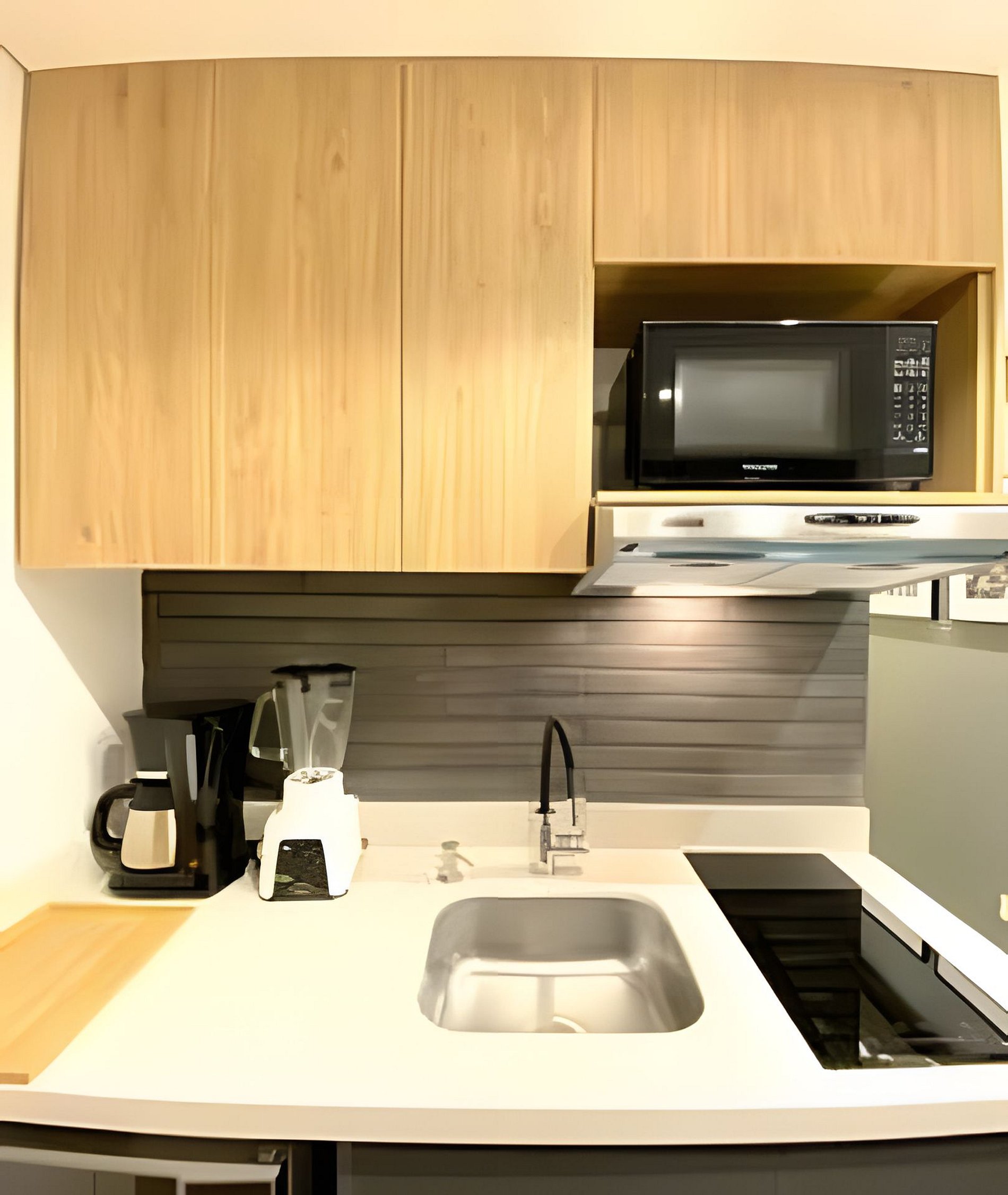 Apartamentos equipados con cocina completa, sala, Wi-Fi de alta velocidad y Smart TV.