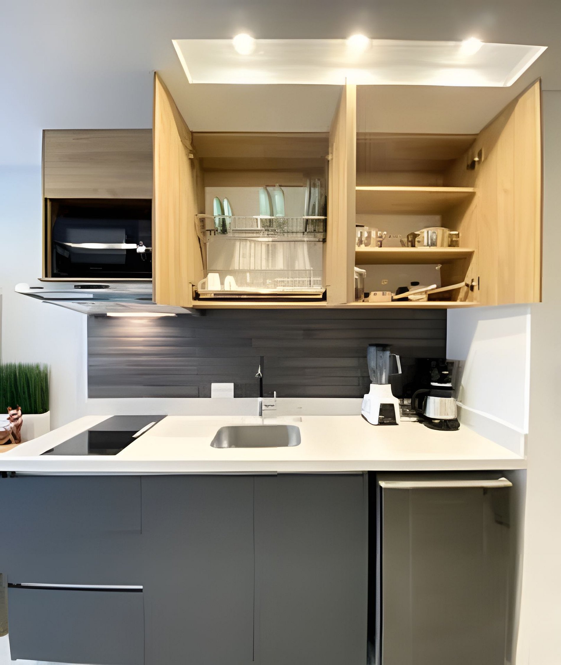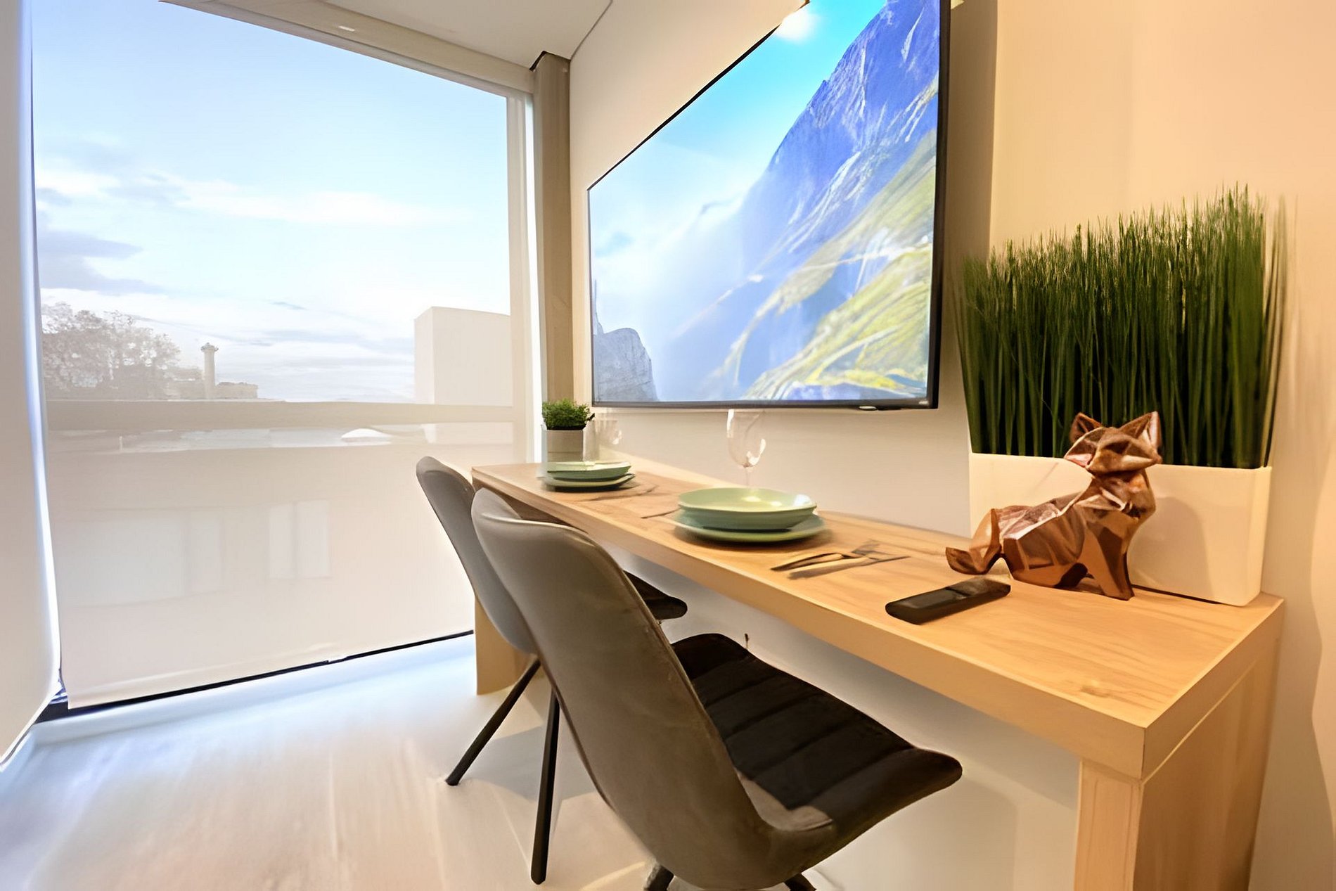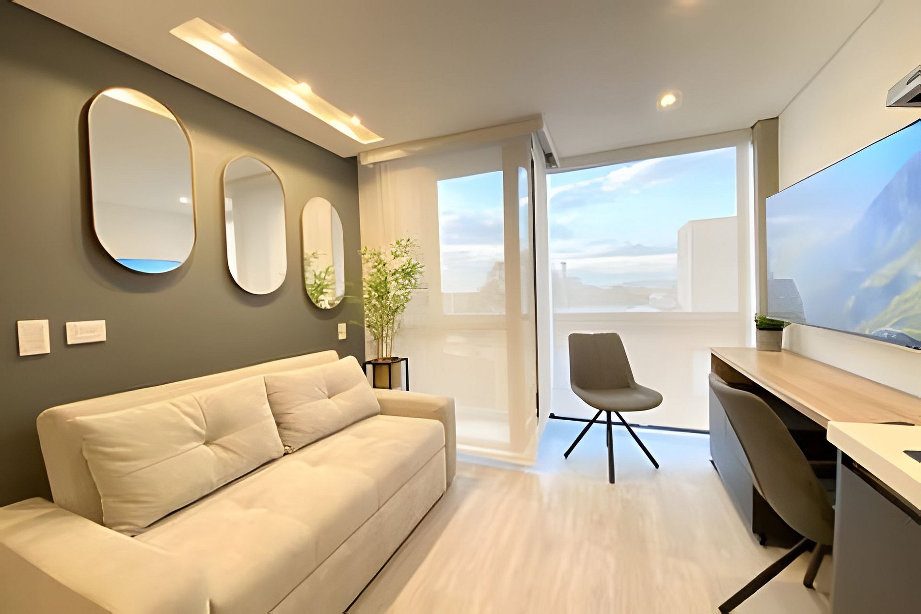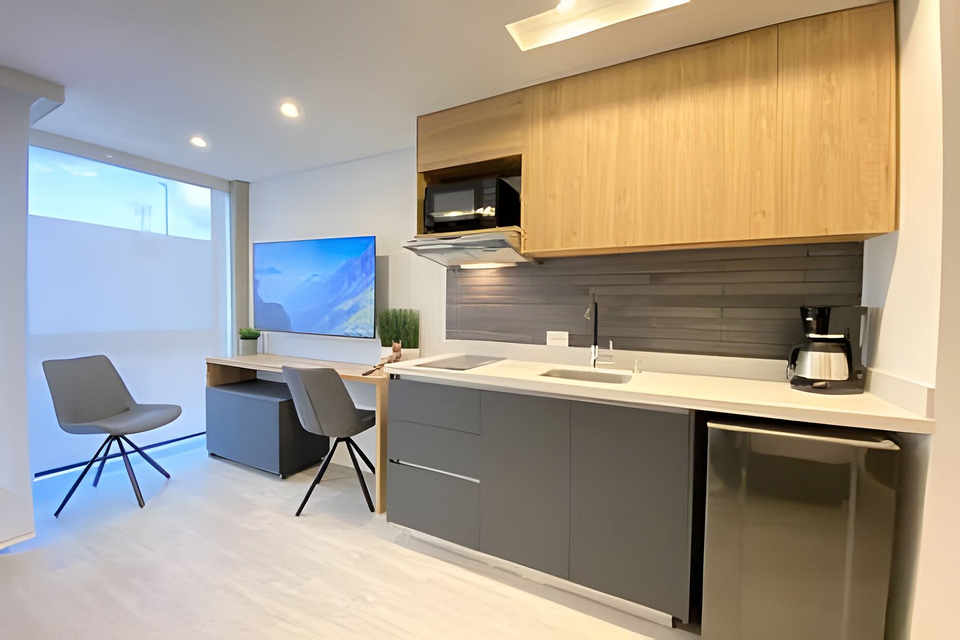 Apartamentos equipados con cocina completa, sala, Wi-Fi de alta velocidad y Smart TV.